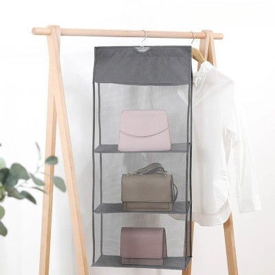 Pour celles qui disposent d'une tringle ou d'une penderie, les rangements suspendus sont idéaux. Notre SmartBag Dressing™ est une véritable révolution : avec ses compartiments transparents, vous voyez immédiatement tous vos sacs sans avoir à les manipuler. Il se fixe directement à votre penderie et optimise l'espace vertical souvent inexploité.